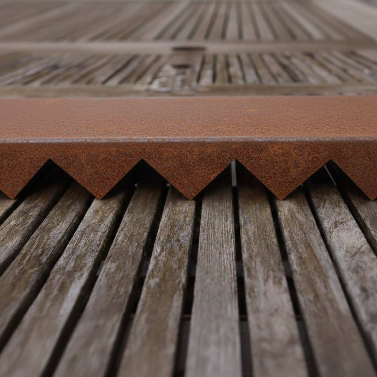 L’acier corten est reconnu pour sa patine naturelle évolutive couleur rouille, qui protège le matériau tout en lui donnant un aspect décoratif très tendance dans les jardins contemporains comme naturels. Contrairement à une bordure en plastique ou en bois, elle ne se déforme pas, résiste à la corrosion et aux intempéries et ceci sans aucun entretien. Sa teinte chaude s’harmonise parfaitement avec les graviers, les plantes et les paillis organiques, apportant une valeur esthétique supplémentaire à vos aménagements extérieurs. De teinte noire/grise à la livraison, l'acier corten s'oxydera naturellement au fil du temps pour prendre une teinte rouille durable et sans entretien.