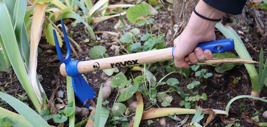 La sarcleuse binette combine les atouts des deux outils. Elle permet à la fois de biner le sol, mais également, grâce à ses griffes, de le racler et donc d’éliminer efficacement, et de manière écologique, les mauvaises herbes.