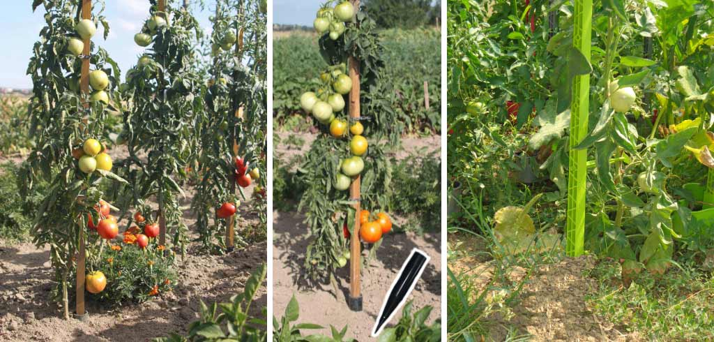 Le tuteurage consiste à attacher un pied de tomates à une structure verticale - tuteur en bambou ou plastique recyclé, piquet en bois, tuteur conique, treillis, etc. Cette structure permet de soutenir le poids de la tige, qui devient de plus en plus lourde au fur et à mesure de la croissance des fruits et peut se briser à tout moment.