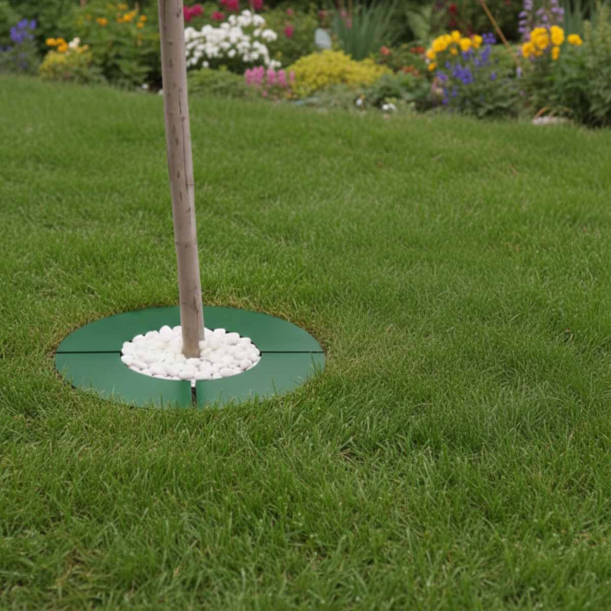 Vous souhaitez un aménagement autour d'un arbre original et durable dans le temps ? L’entourage d’arbre en acier galvanisé zingué et peint en vert apporte une solution fiable pour éviter les blessures causées par les tondeuses et robots tondeurs autour des jeunes ou anciens arbres. Il facilite également l'entretien extérieur en évitant l'utilisation d'un coupe bordure après la tonte. Sa peinture polyester de coloris vert lui permet de s’intégrer avec sobriété dans n’importe quel aménagement paysager. Ce produit allie fonctionnalité et esthétisme pour prolonger la durée de vie de vos arbres tout en structurant proprement votre jardin.