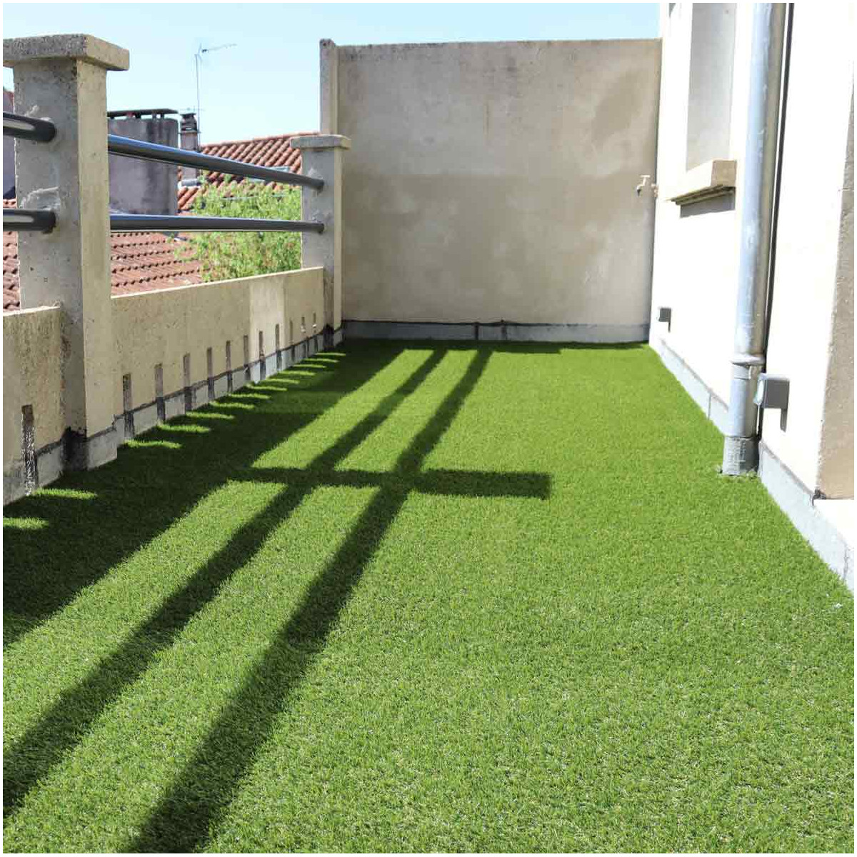 La création d’un espace extérieur constitué de gazon artificiel permet d’apporter une touche de verdure dans différents types d’extérieurs : balcon, terrasse, véranda, contour de piscine… De très bonne qualité, ce gazon artificiel reproduit un véritable effet naturel qui apportera beaucoup de charme à votre extérieur. Pour habiller votre extérieur bétonné, n’hésitez donc pas à opter pour ce gazon synthétique. Vous pouvez adapter facilement la forme et la taille du gazon artificiel grâce à une possibilité de découpe facile.