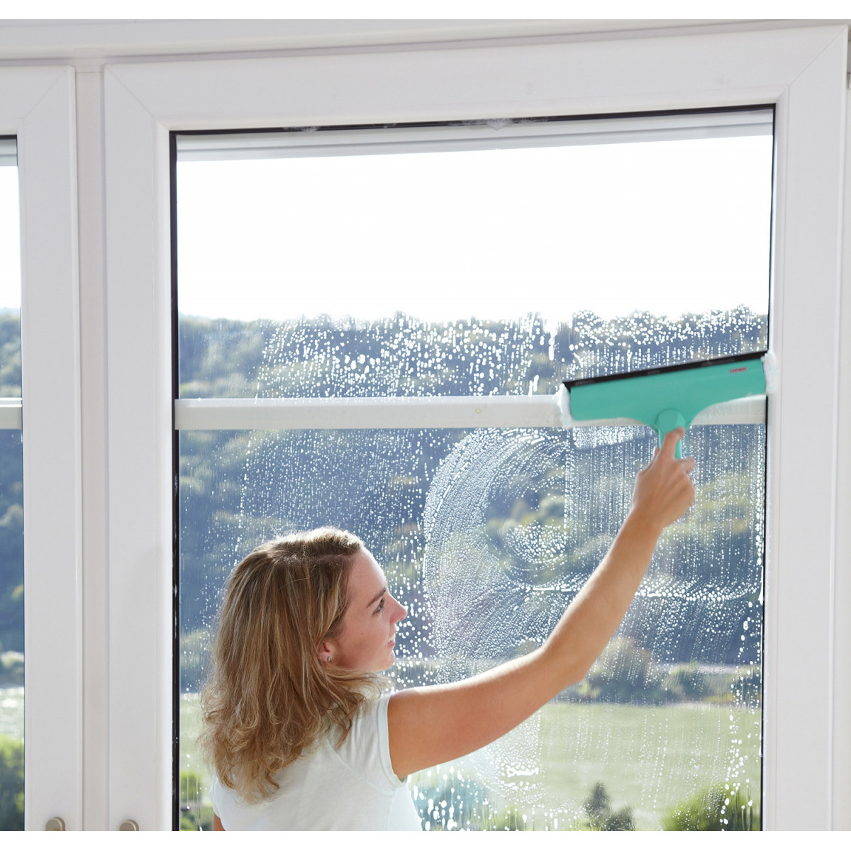 Un lave vitre Leifheit pratique et durable pour nettoyer une baie vitrée