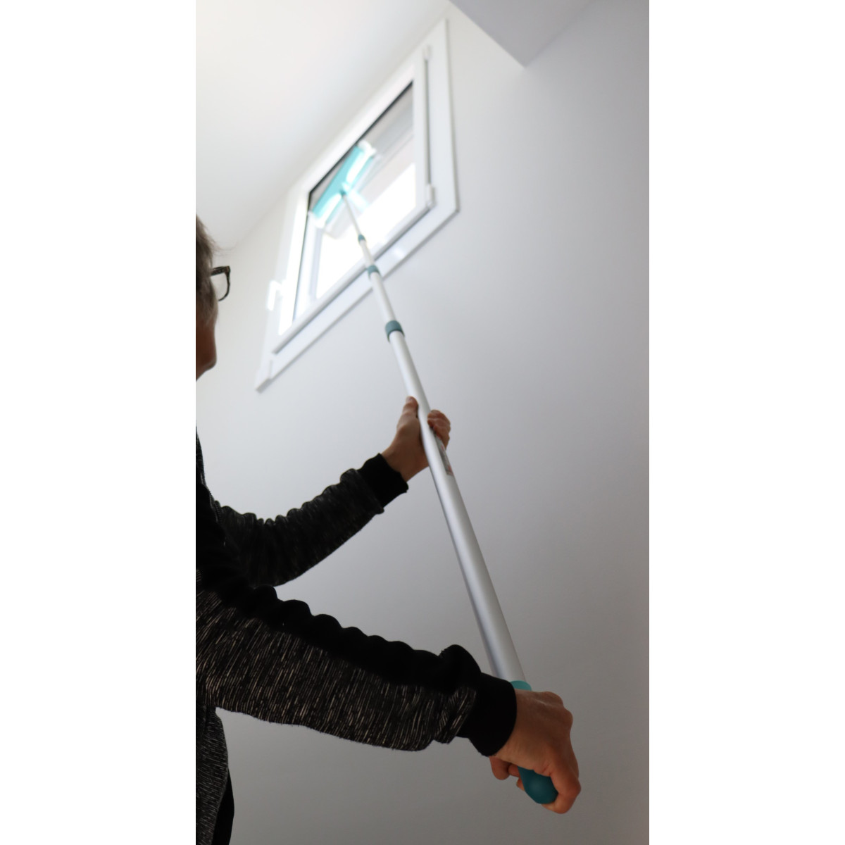 Par contre, pour nettoyer une véranda, un velux en hauteur ou de grandes ouvertures vitrées, il faut un outil à la fois allongeable, léger et efficace. Nous vous proposons donc la version du lave vitre manuel avec son manche télescopique de 130 à 400 cm. Il a justement été pensé pour atteindre les surfaces vitrées situées jusqu’à environ 5 mètres de hauteur de travail, tout en restant au sol.