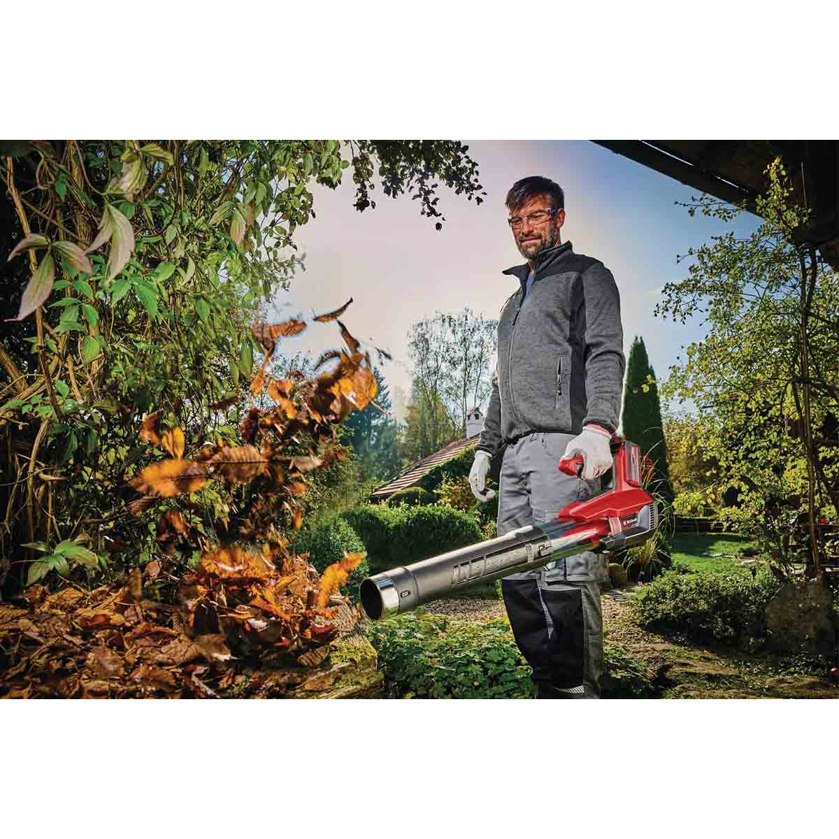 Ce souffleur pour les feuilles est conçu pour les nettoyages de printemps et d’automne, permettant de balayer feuilles, herbes coupées ou poussières sur votre terrasse, vos allées de jardin ou pelouses. Ce modèle performant est équipé d’un moteur offrant plus de puissance avec une vitesse à vide entre 13.000 et 18.000 tours/min. Cette puissance est au service de la polyvalence avec la possibilité d'ajouter en option un kit de nettoyage de gouttière pour souffleur puissant sans fil Einhell (Réf. 32931) pour nettoyer facilement vos gouttières toute l'année.